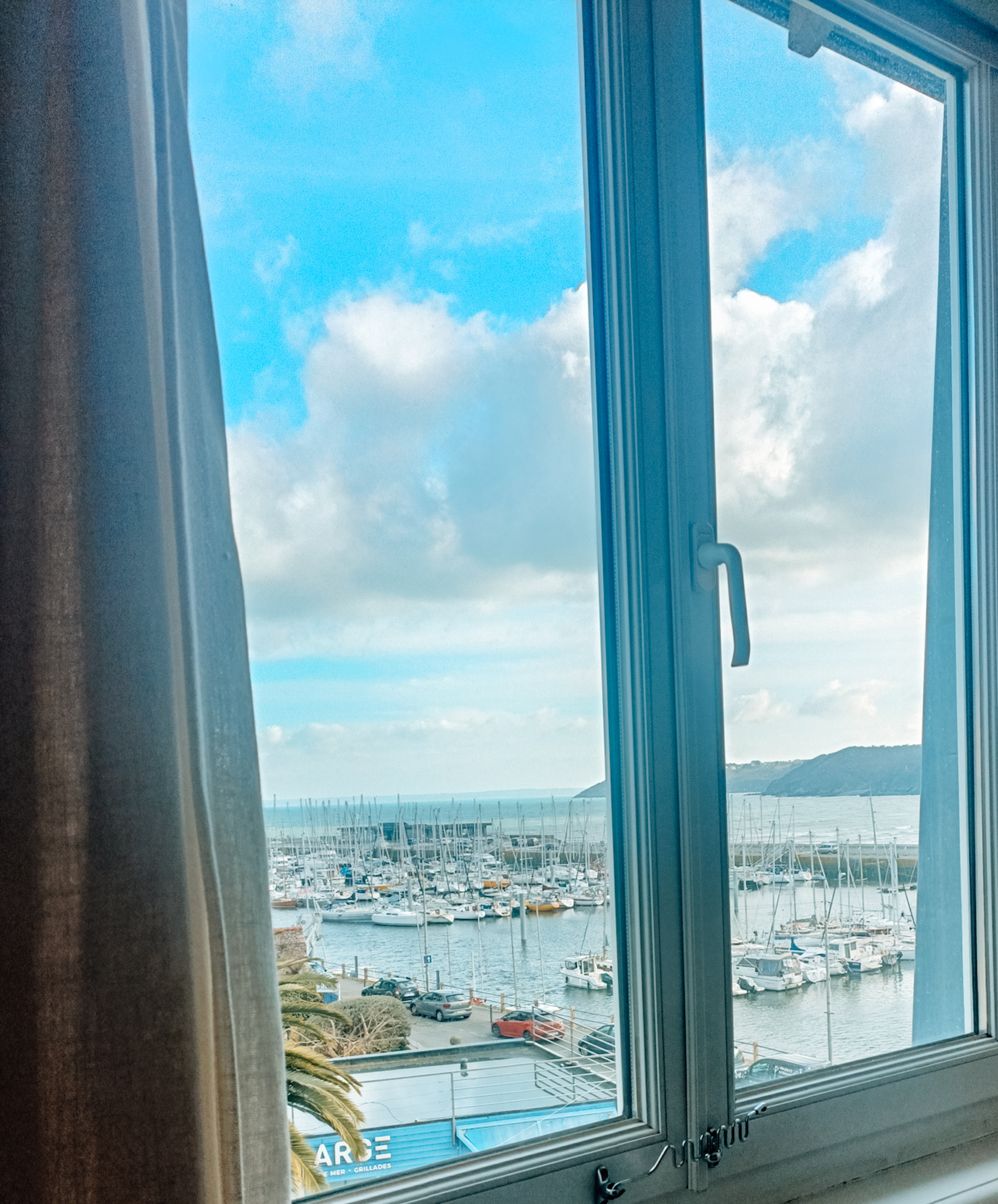 Depuis certaines chambres, le regard se porte vers le port et la mer, tandis que la lumière bretonne accompagne vos réveils.