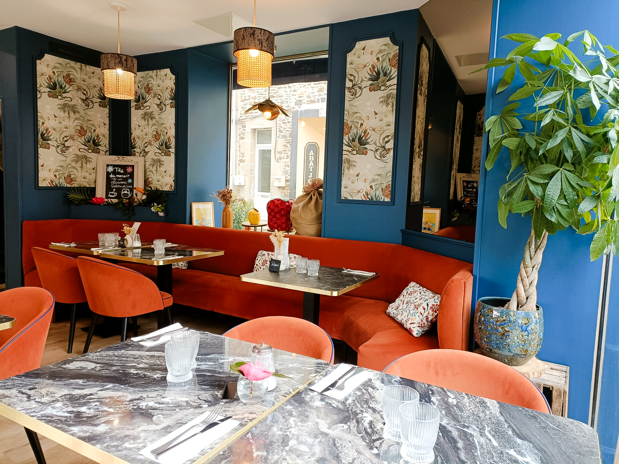 Au rez-de-chaussée, L’Opaline vous accueille dans son salon de thé et restaurant, où sont préparées pâtisseries et douceurs maison.